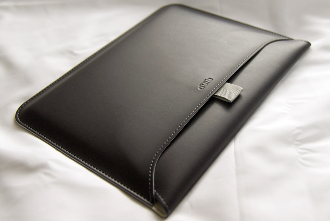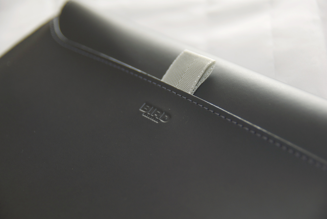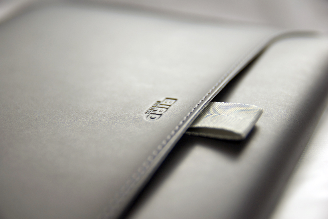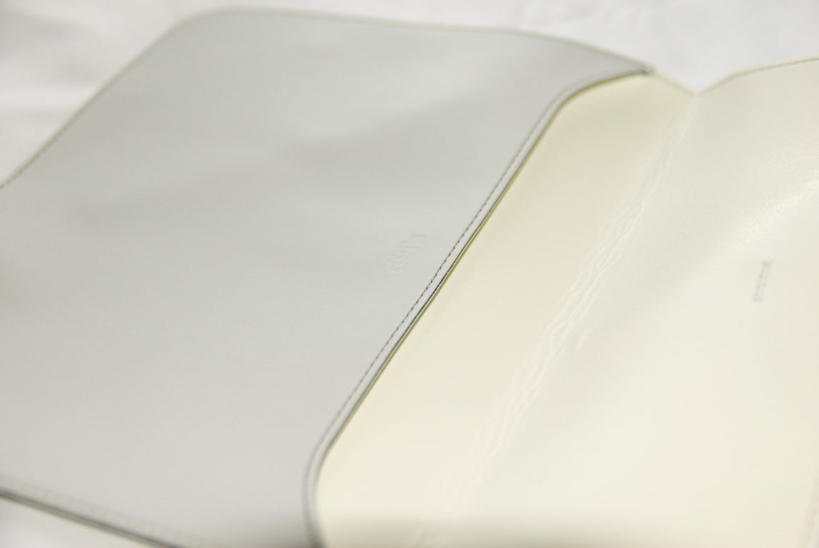 iPodやiPhoneケースなどでも有名なrethinkのデザイン。iPadを取り出す時は、センターのリボンを引きフタを開くだけ、蓋を閉める時も、ベロを差し込むだけでOKのシンプルな設計。